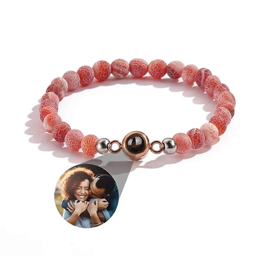 Personalized Stone Bead Photo Projection Bracelets with Heart Charm