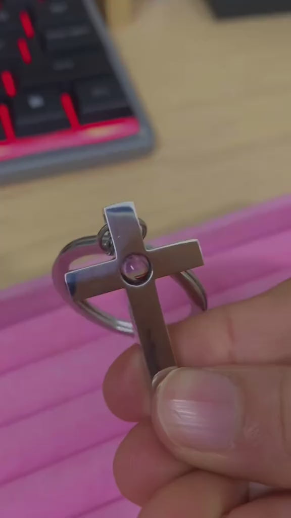 Our photo projection cross necklace is custom made with your cherished photo or available with our created images of Jesus or the Lord's Prayer. Item is delivered to you in a gift box and includes a stainless steel box chain with your choice of 17, 19 or 23 inches. To view your image, hold the product up to a bright light source and look closely into the optical glass to reveal the hidden picture inside or, turn on your cell flashlight and place the flat side of the glass over the light to project the image onto a surface.
